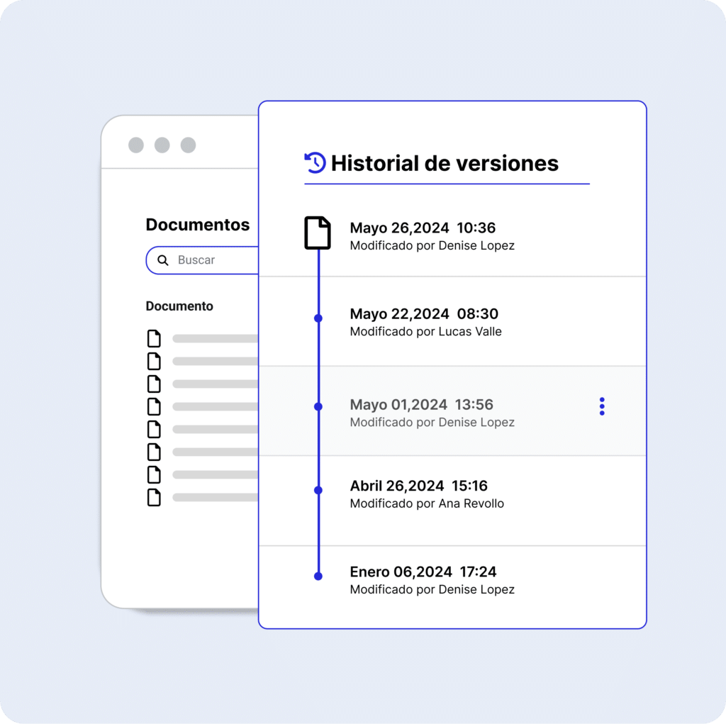 Proporciona un historial completo del ciclo de vida de tus contratos o de cada contrato. Este registro te permite rastrear cada cambio y decisión tomada, garantizando una transparencia auditable y completa para tu empresa. Además con esta característica, puedes gestionar tus contratos de manera más eficiente, asegurándote de tener siempre acceso a información precisa y actualizada.