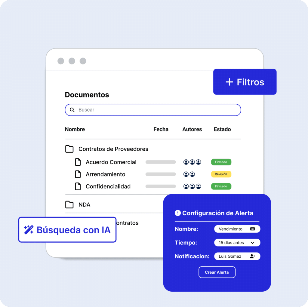 Permite un acceso rápido y sencillo a contratos mediante un buscador inteligente específico para el área de compras.