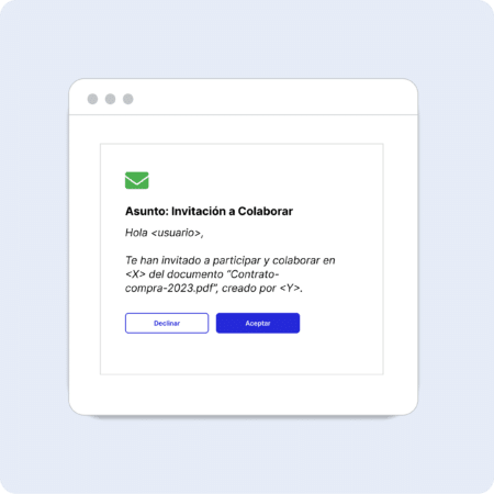 Permite invitar a revisar, comentar, proponer y aprobar documentos, facilitando una colaboración efectiva y estructurada entre todas las partes involucradas.