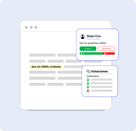 Incluye un sistema de votación para aprobar o rechazar documentos, registrando cada voto y decisión para una gestión clara y ordenada.