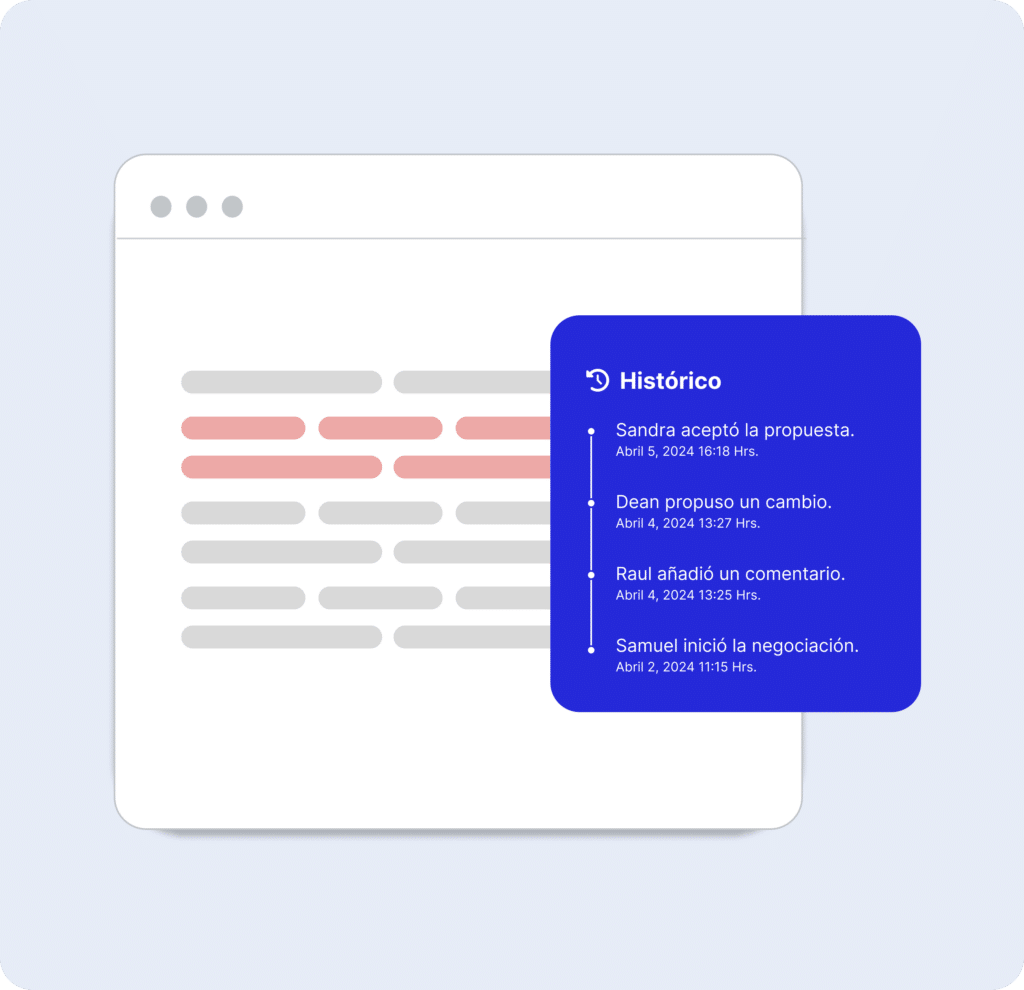 Registro auditable de todos los comentarios, propuestas de cambios y decisiones tomadas entre todas las partes