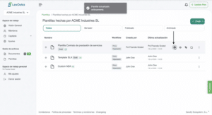 Una vez que tu plantilla está lista y probada, el siguiente paso es publicarla para que esté disponible para su uso. En la sección de «Plantillas», selecciona la plantilla que deseas publicar y haz clic en «Publicar». Confirmarás la publicación, y la plantilla se activará en la plataforma, haciéndola accesible para la creación de nuevos documentos.
