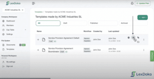 Para probar una plantilla de LexDoka en nuestra plataforma, haz clic en «Probar Plantilla» para abrirlo en una nueva ventana. Aquí, puedes interactuar y ajustar sus funciones según sea necesario. Guarda cualquier cambio antes de finalizar la plantilla para su uso. Este proceso directo garantiza una prueba eficiente y personalización de las plantillas de Lexdoka antes de su implementación.